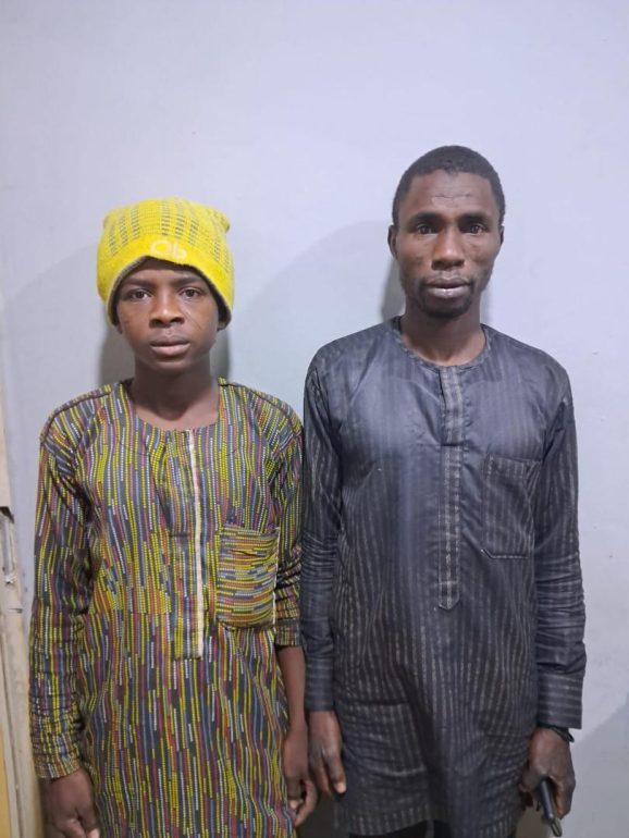 It explains that the two kidnapped victims, Habu Yakubu and Isufu Abubakar, abducted from Kwaita village via Pegi district of Kuje area council, were successfully rescued unharmed.
