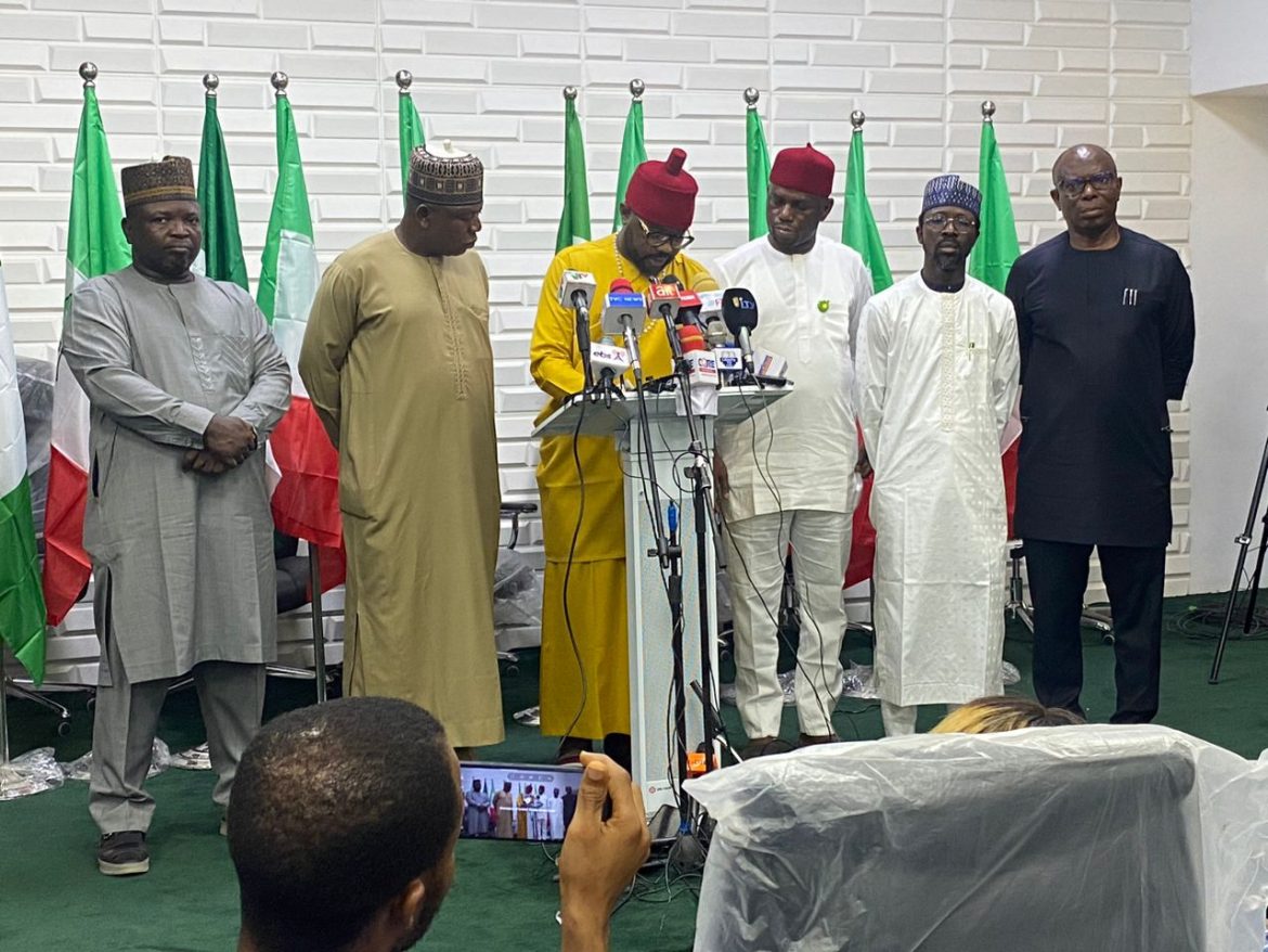 At a Media conference in Abuja, the Spokesperson of the Coalition of opposition of Federal Lawmakers Ikenga Ugochinyere alleged that Alhaji Damagun is planning to handover the Party structure of the Party to the ruling All Progressives Congress, APC.