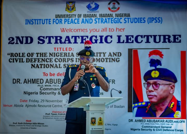This is coming after the Institute for Peace and Strategic Studies, University of Ibadan held the 2nd Strategic Lecture in Ibadan, Oyo State with focus on “Roles of the Nigeria Security and Civil Defence Corps in Promoting National Security”.