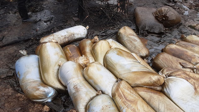 According to the CG, the following exhibits were recovered at the crime scene: Large quantities of already syphoned stolen crude oil packaged in Cellophane Bags and Kegs, Materials used for refining crude oil illegally, Galvanised metal pipes in numbers, abandoned clothing and other personal effects, metal buckets amongst others were all uncovered and dismantled.