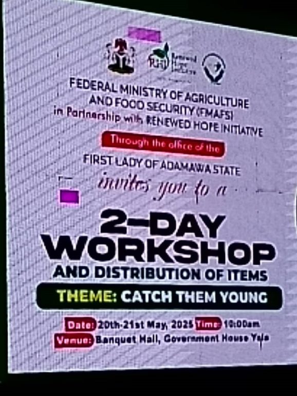 The Federal Ministry of Agriculture, in collaboration with the Renewed Hope Initiative and office of the wife of the Adamawa State Governor, Hajiya Lami Fintiri, has organized a two-day workshop aimed at educating students and empowering youths on modern agricultural techniques.