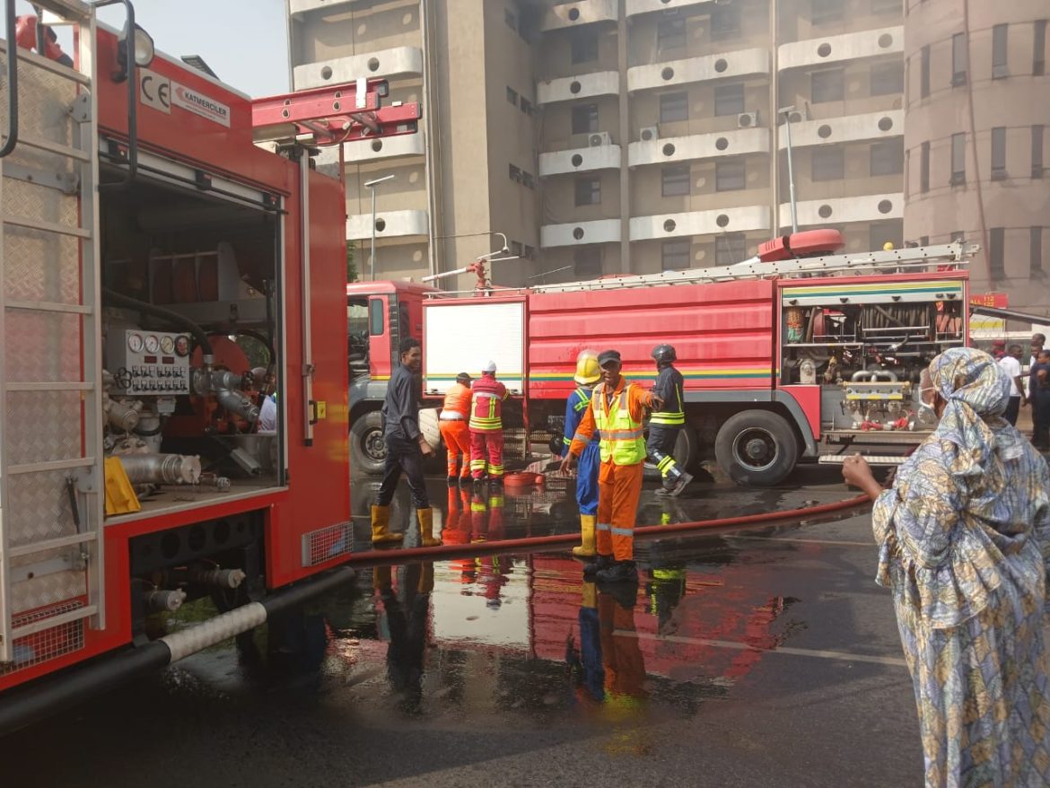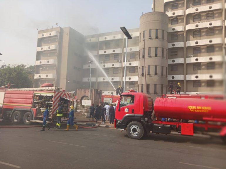 Firefighters from the Federal Capital Territory Fire Service were quickly deployed to the scene and are currently battling the blaze to prevent it from spreading to other parts of the building.